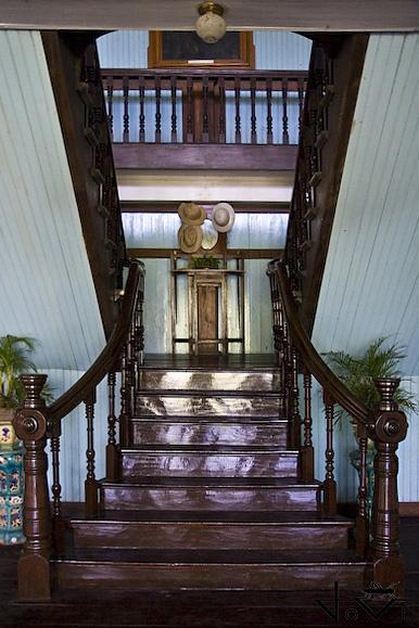 The house has a four-meter high ceiling and large windows with ventanillas, smaller windows beneath the large windows with sliding panels that can be opened to admit the wind. The lower storey itself is elevated from ground level by a meter-high crawlspace, allowing the wooden foundations to be aired, preventing dampness from rotting the wood.